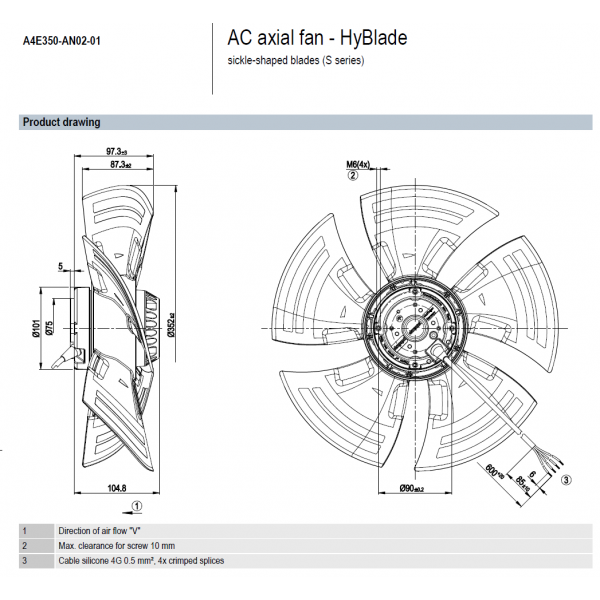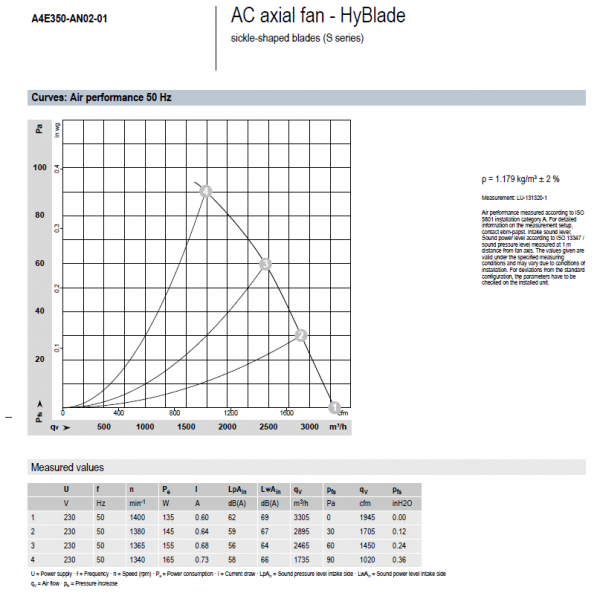 Lưu lượng tối đa: 3305 m3/h @ 0 Pa