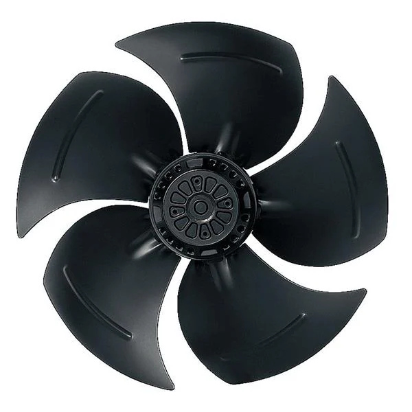 Cánh sắt 5 cánh sơn phủ đen nhựa "PP", hướng thổi "V" ngược chiều kim đồng hồ, nhìn từ trục quay rotor tới