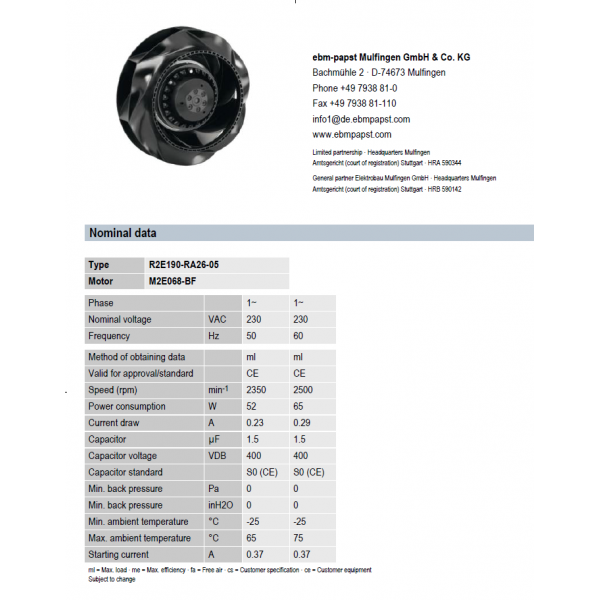 Quạt ly tâm kiểu cánh RadiCal đường kính cánh 190mm