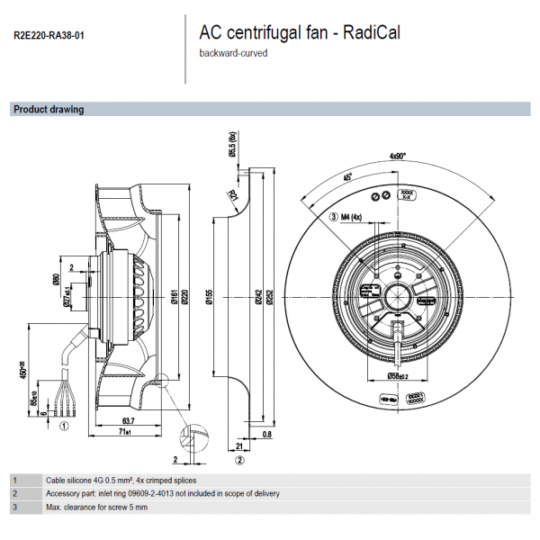 Quạt ly tâm kiểu cánh RadiCal đường kính cánh 220mm