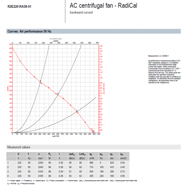 Lưu lượng tối đa: 885 m3/h @ 0 Pa