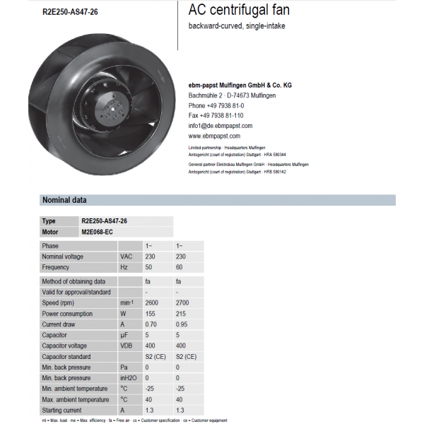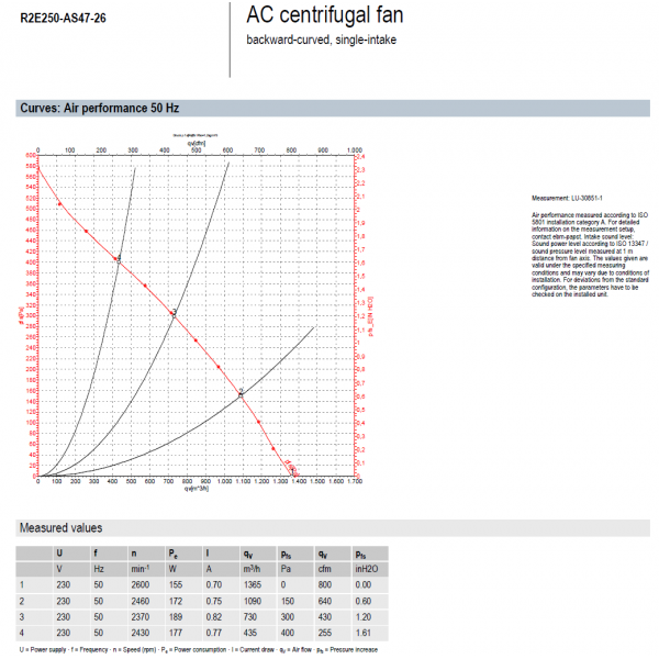 Lưu lượng tối đa: 1365 m3/h @ 0 Pa @ Max. 400 Pa