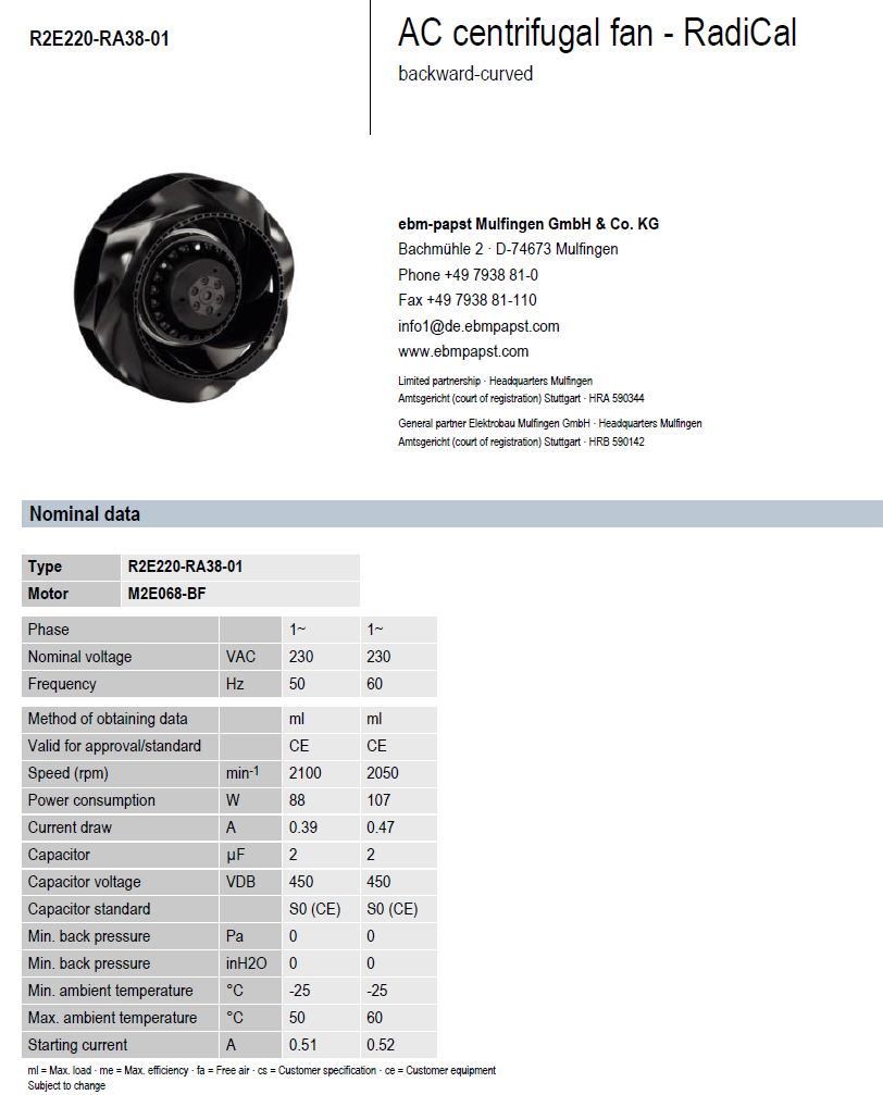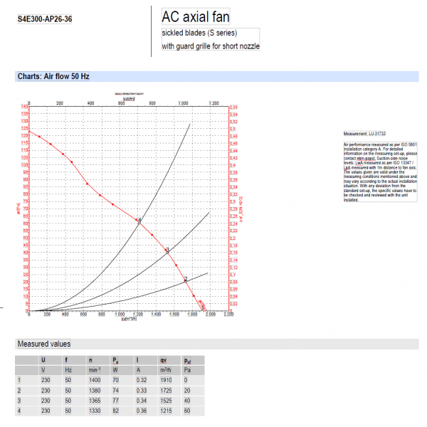 Lưu lượng tối đa: 1910 m3/h @ 0 Pa
